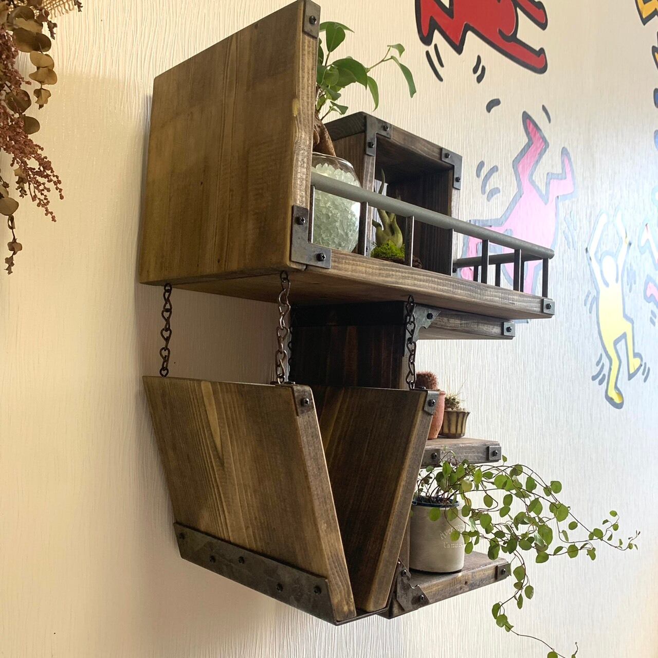 インダストリアル ヴィンテージ アンティーク 家具 インテリア収納 棚 アイアン ウォール シェルフ グリーンディスプレイ
