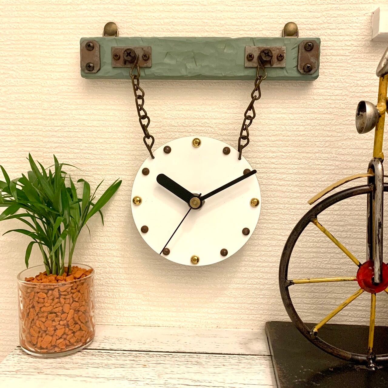 ワンポイントに錆びさせたチェーンで吊り下げてます。