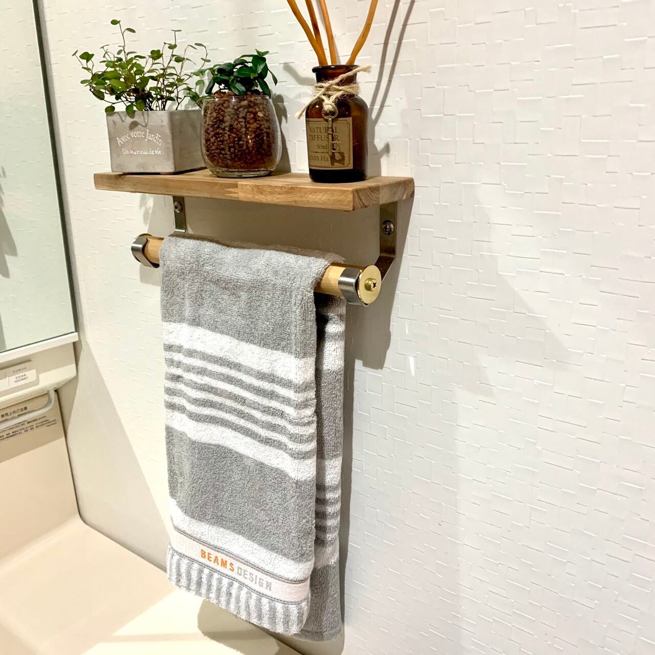 棚付きのタオル掛けです。